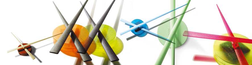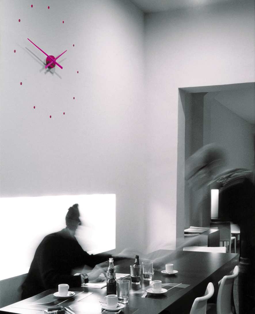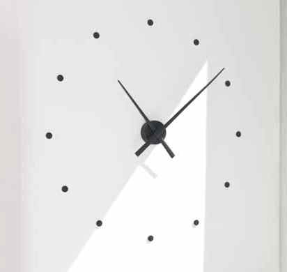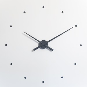 Nuevo concepto de reloj de pared, de diseño vanguardista y gran versatilidad. Un diseño minimalista y contemporáneo. Adaptable a cualquier espacio en hogares y oficinas. Fácil instalación gracias a sus puntos horarios adhesivos. Se produce en dos versiones: - 80 cm. de diámetro. - 50 cm. de diámetro.