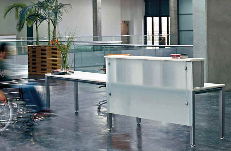 Nuevas soluciones de equipamiento con mesas rectas, dobles, de progresión, ergonómicas, de reunión, mostradores, que se adaptan de forma flexible a las diferentes necesidades de trabajo.