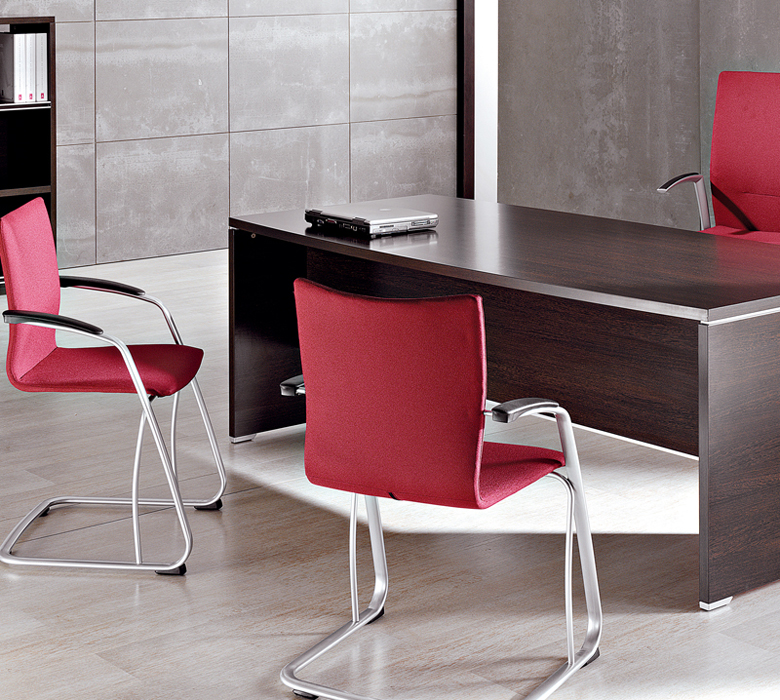 Sillones direccionales y confidentes con múltiples posibilidades de acabados y amplias prestaciones ergonómicas completando su oferta como silla operativa para equipamiento administrativo. Su asiento y su respaldo son de espuma inyectada sobre un bastidor metálico. Desplazamiento de banqueta opcional.