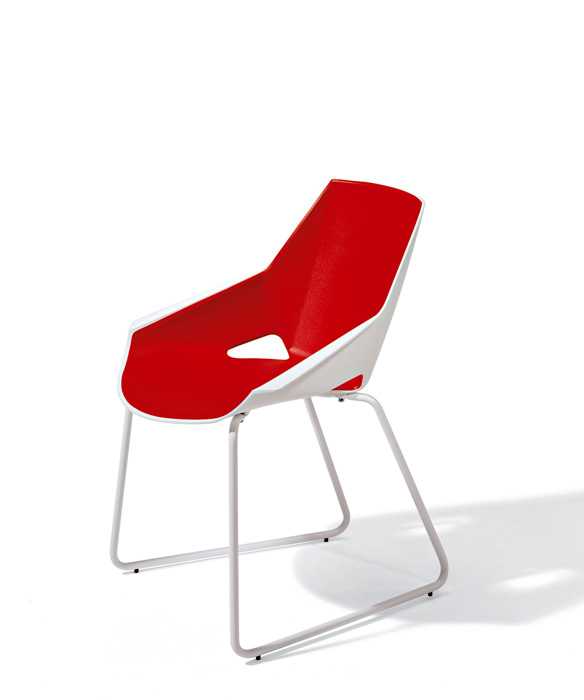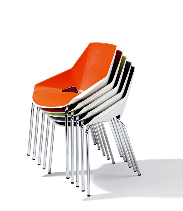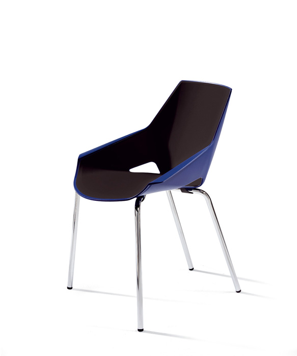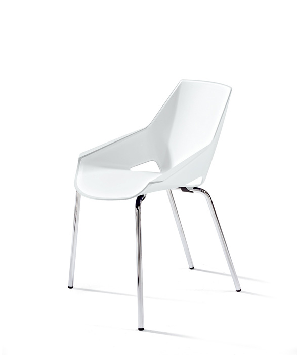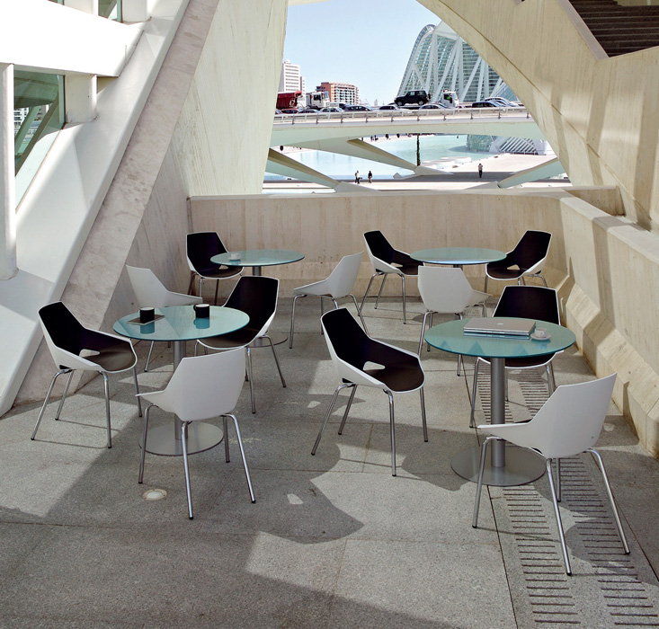 Una silla monoblock de diseño vanguardista capaz de aportar diferentes soluciones de equipamiento tanto en espacios públicos como privados.