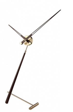 Materiales: nogal y aleación de cobre y zinc. Acabados: nogal natural o wengué y aleación de cobre y zinc pulido mate. Medidas: 73 cms. diámetro. Maquinaria: de cuarzo UTS (alemana).