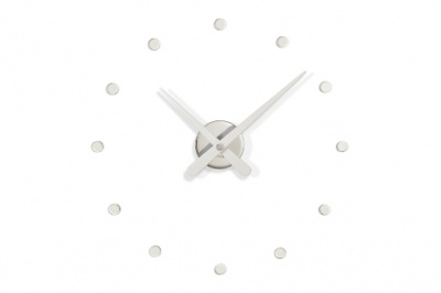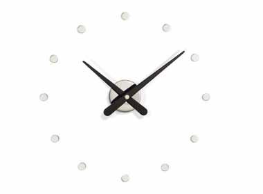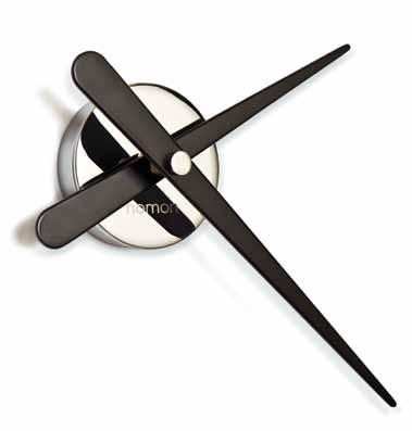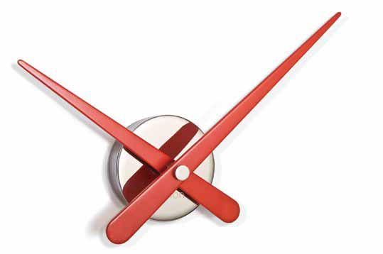 Materiales: acero y nogal lacado. Acabados caja: acero cromado. Acabado agujas: nogal lacado (rojo, negro o blanco). Medidas: 50 cm. diámetro. Maquinaria: de cuarzo UTS (alemana).