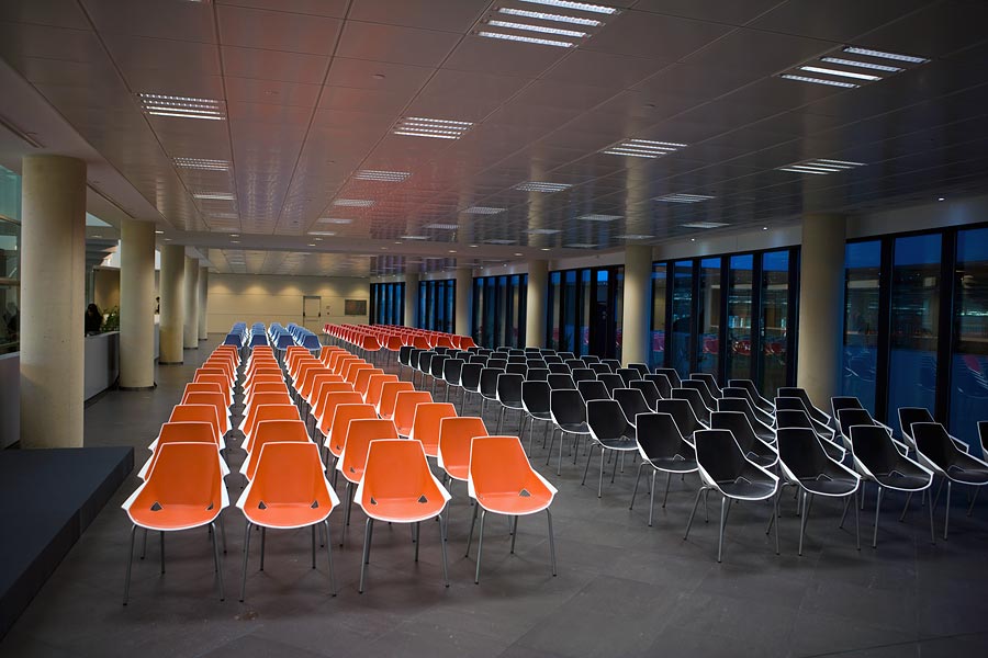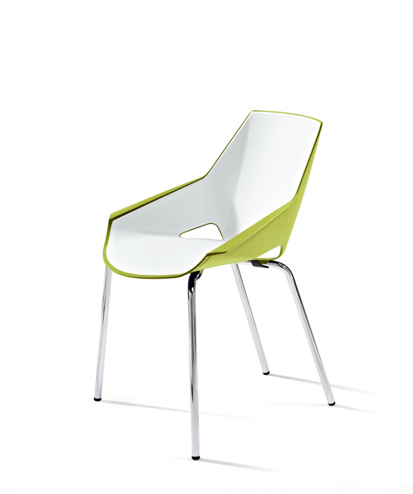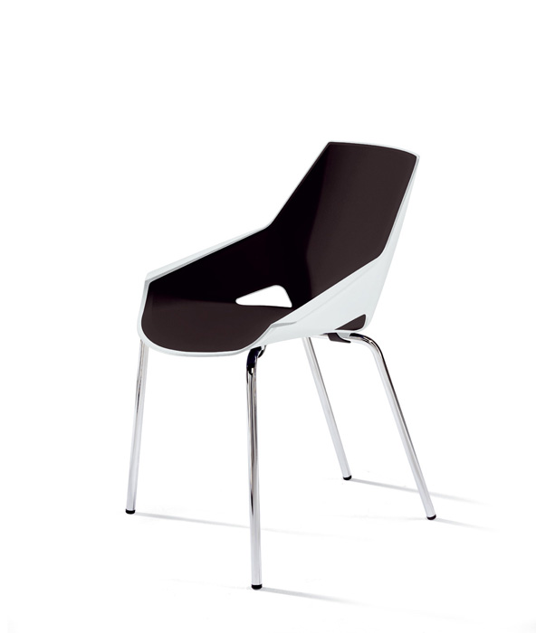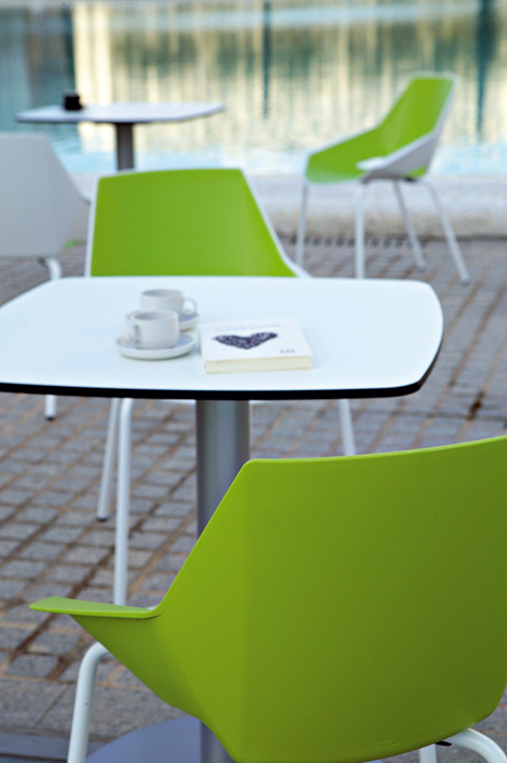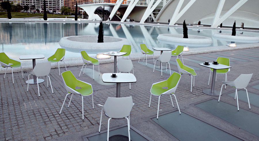 Una silla monoblock de diseño vanguardista capaz de aportar diferentes soluciones de equipamiento tanto en espacios públicos como privados.